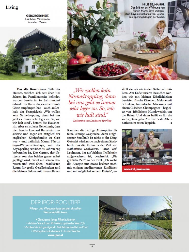 Sacher Magazin 2021 Sacher Magazin 2020 Jewelit (Japan – Tokyo) / Dezember 2016 Salzburgerin LOOK / August 2016 Sacher Magazin 2016 Sacher Magazin 2015 Magazine VON November 2014 VOGUE September 2013 CirceJuni 2013 ART SALZBURG August 2012 vision. altstadt. September 2009 vision. altstadt. Juli 2009 Magazine VON Juli 2008 PARK AVENUE September 2007 ECHO Mai 2006 SalzburgerinSeptember 2003